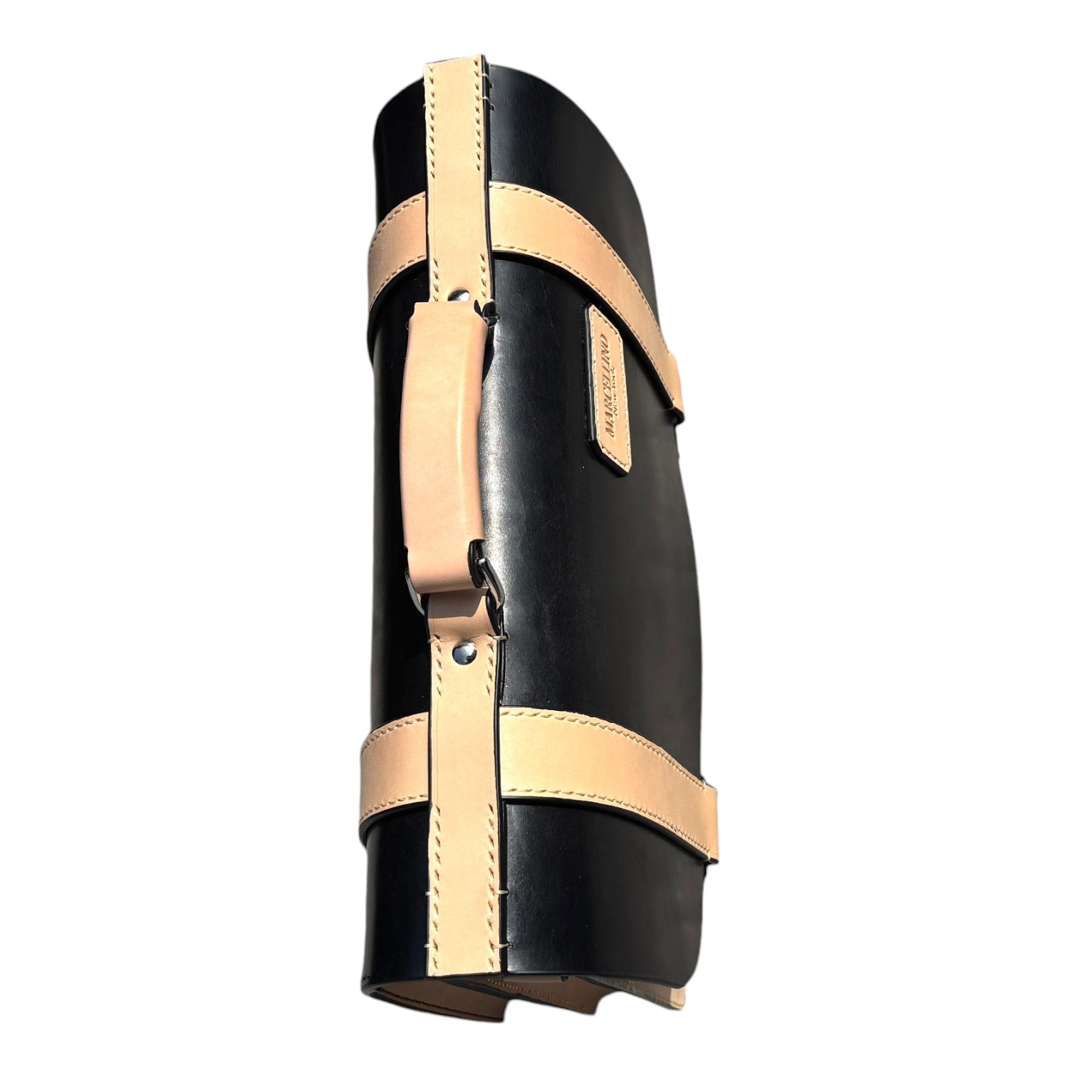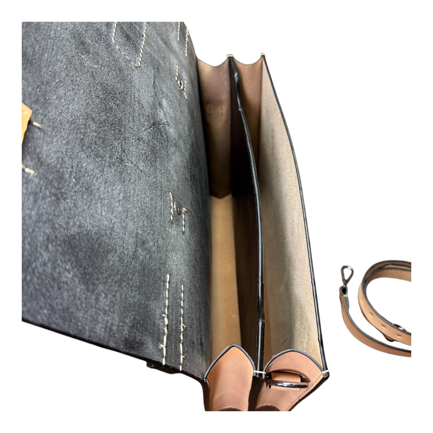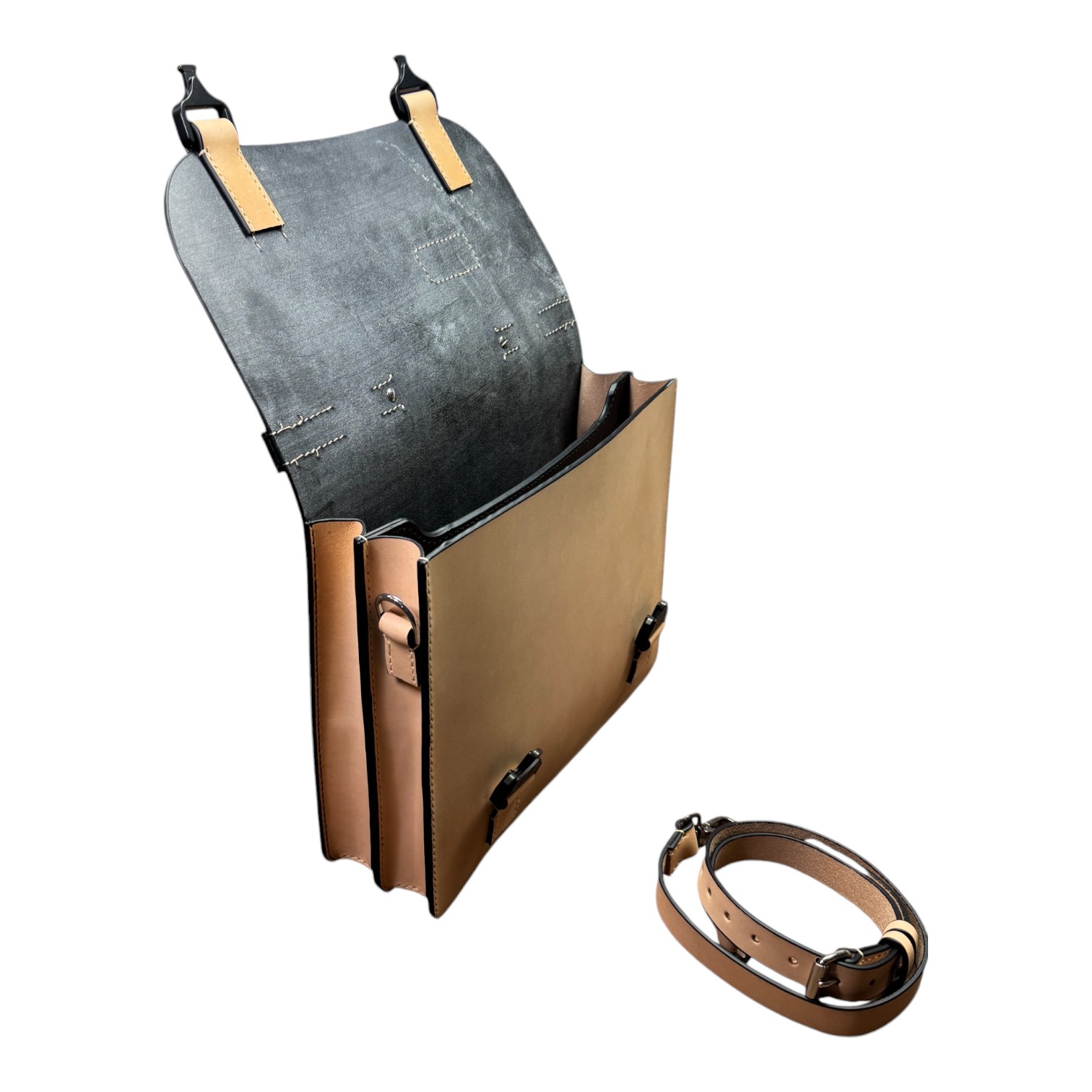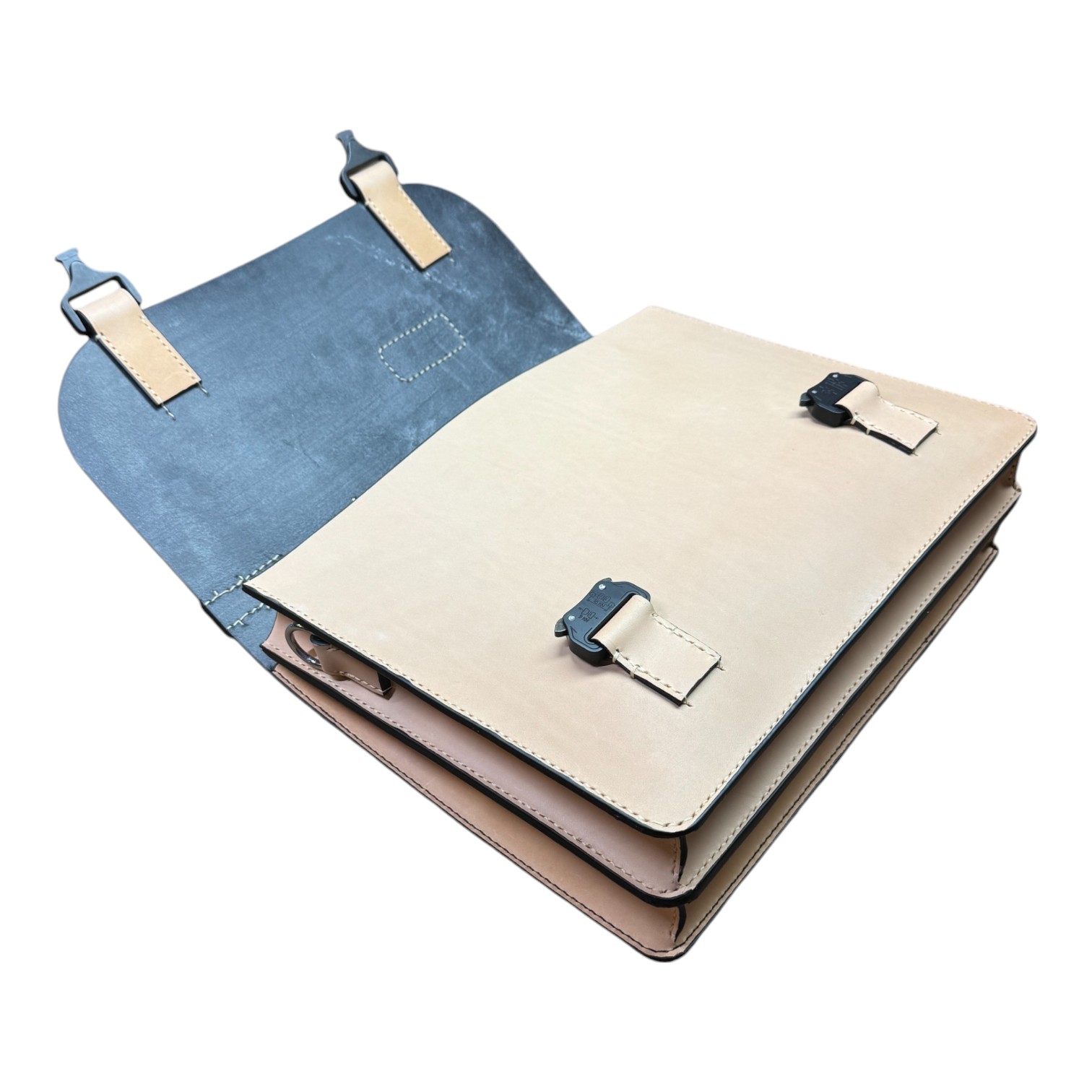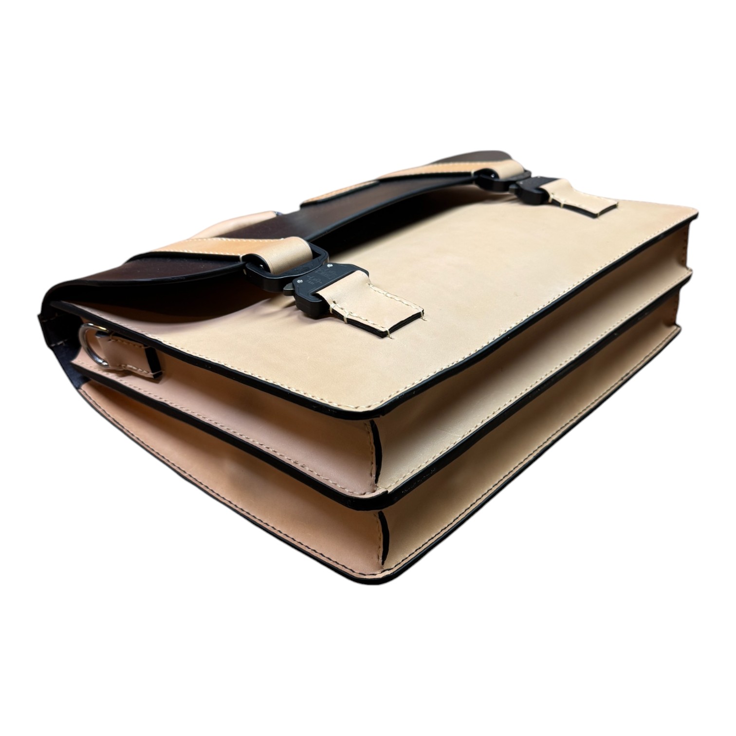 This briefcase is made from Natural Vegetable Tanned and Black UK English bridle leather