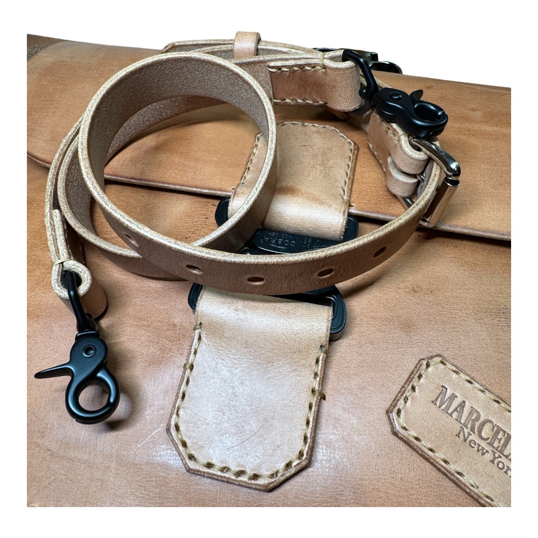 This leather from the American tannery Hermann Oak is as unique as my designs. It is rustic, thick, supple and builds an insane patina.