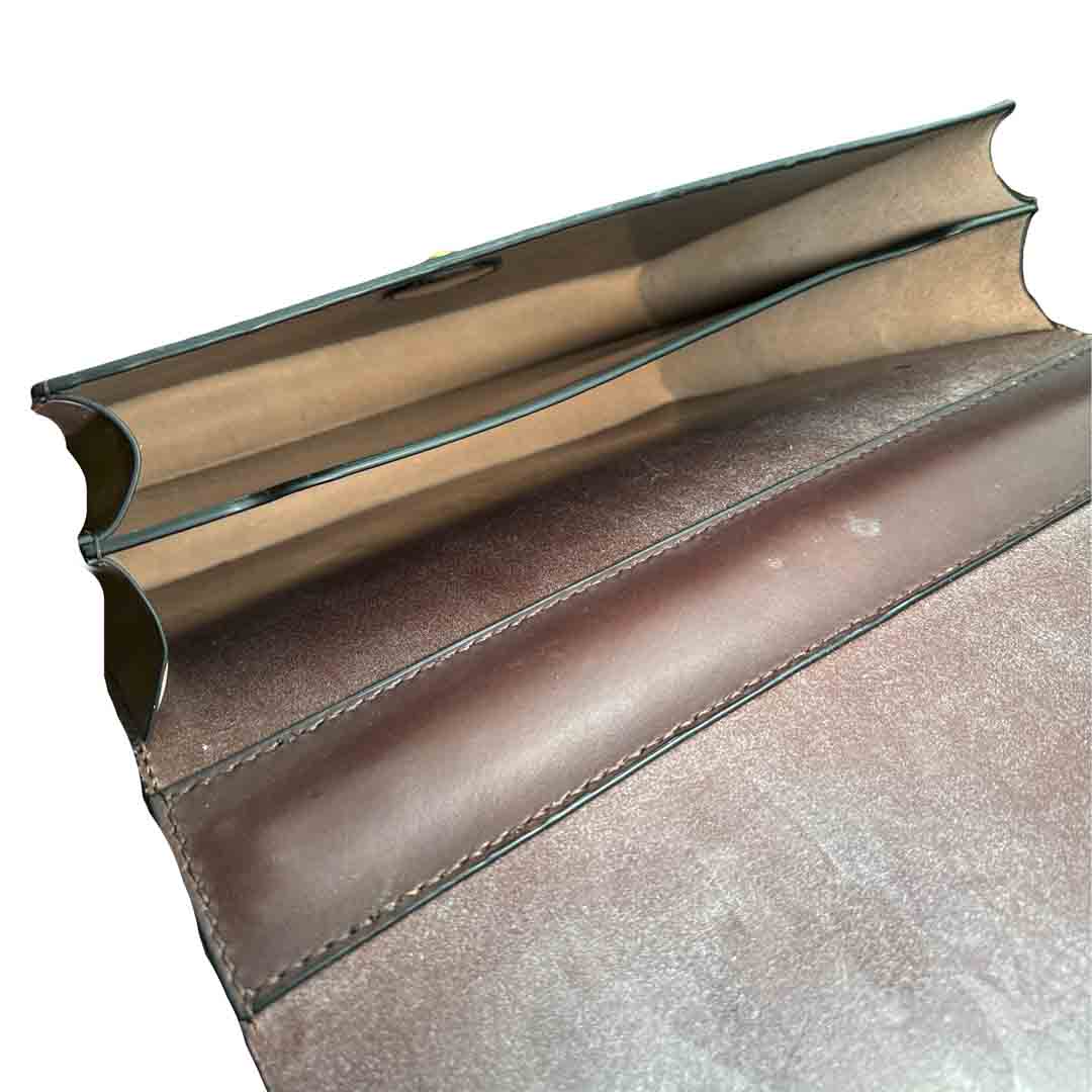 This is a classic briefcase with what I like to call a New York style. The knuckle handle gives this briefcase style an edge but still keeps it traditional and elegant.  Out of the dozens of handle styles that I have made through the years, this one is the most ideal for this style of thick leather briefcase.  The handle is made from steel and permanently secured to the flap.  The grip sits comfortably in the fingers.  If there ever is an “ideal” bridle leather briefcase handle it is this knuckle handle.  The style of this briefcase is certainly a distinctive statement piece.