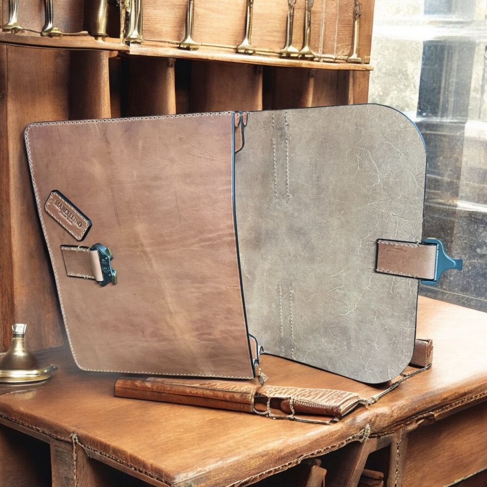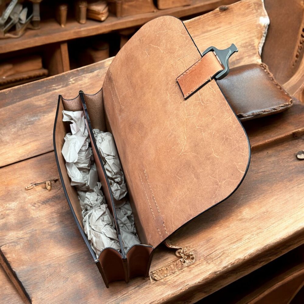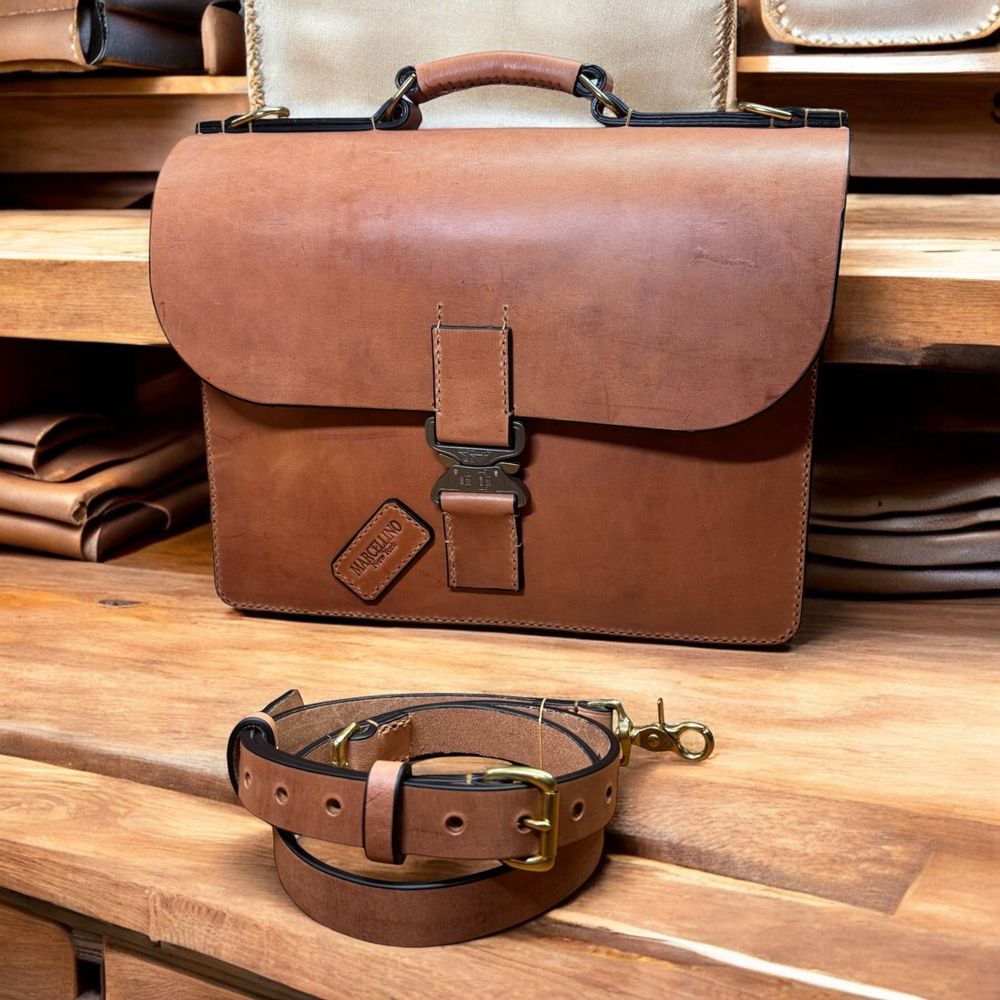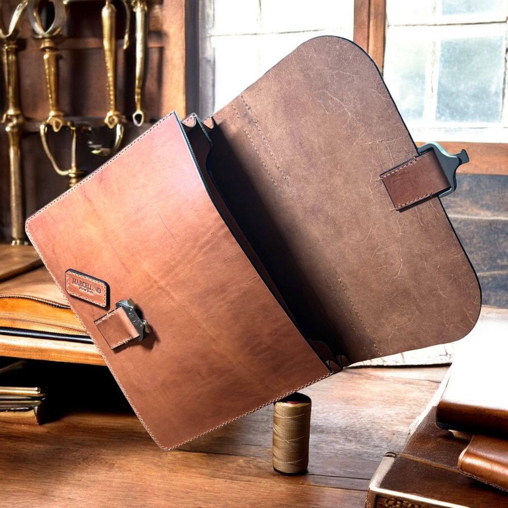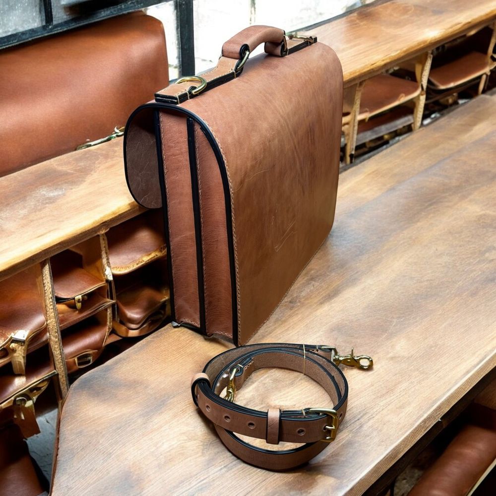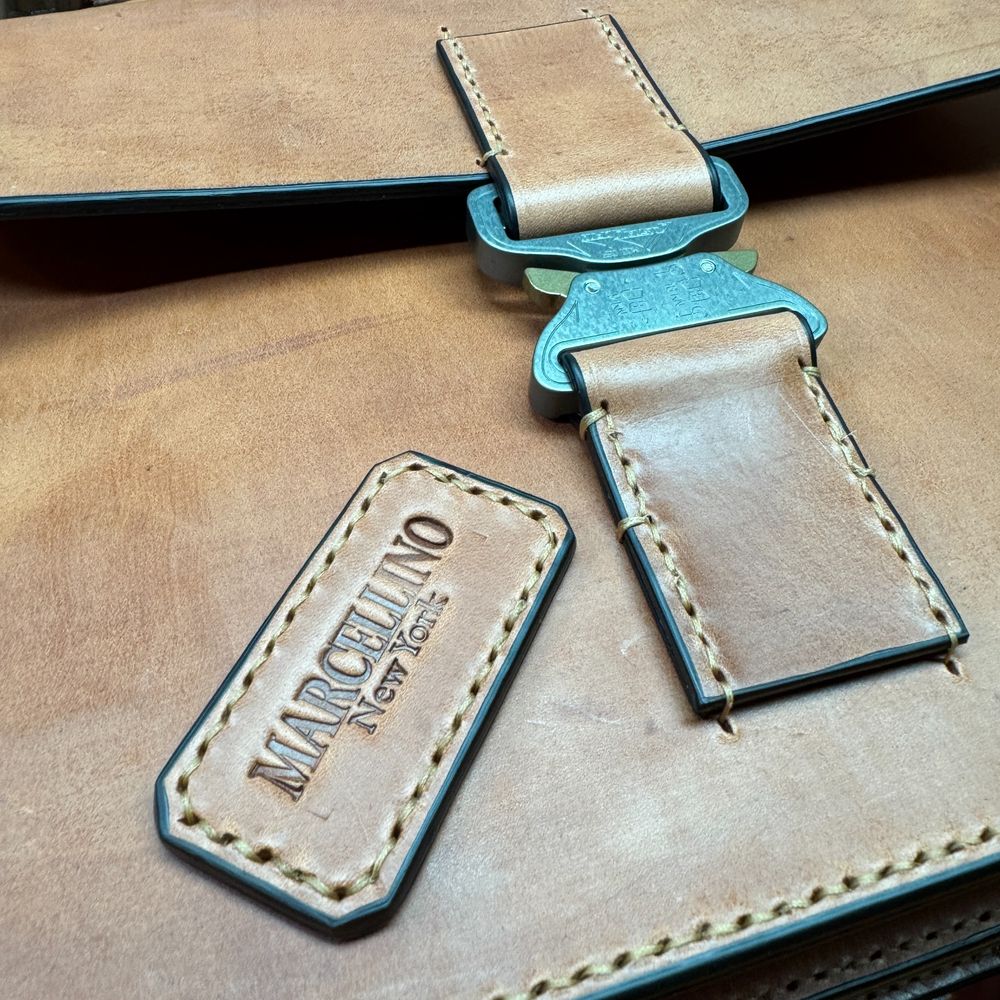 This briefcase was made in summer of 2024. This is very thick harness leather by Hermann Oak tannery.