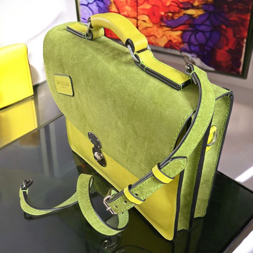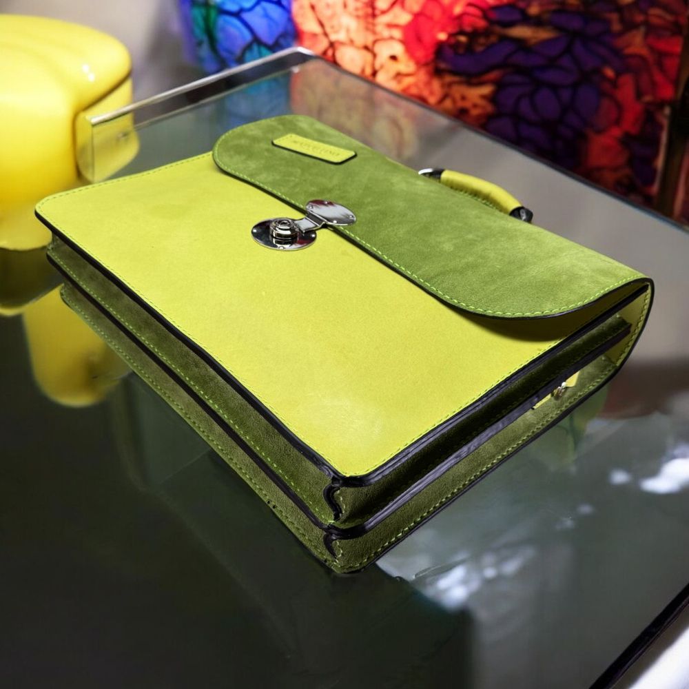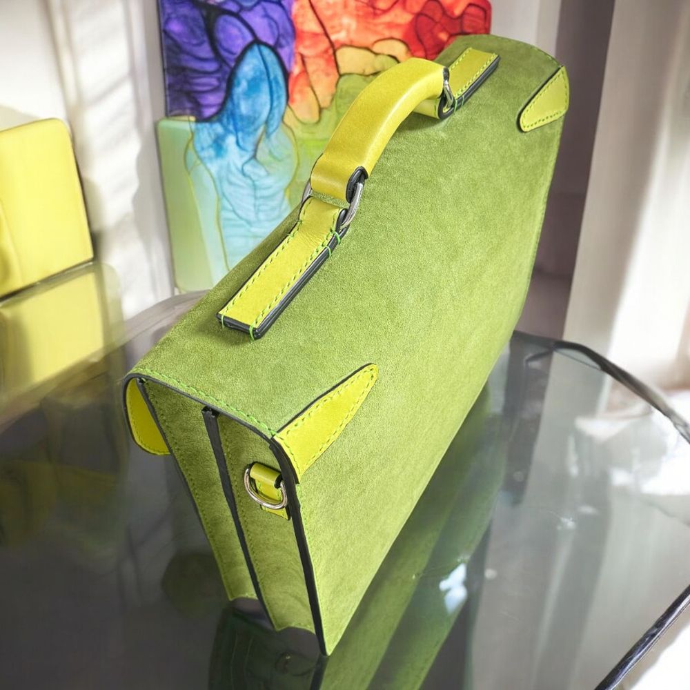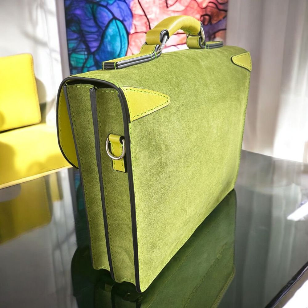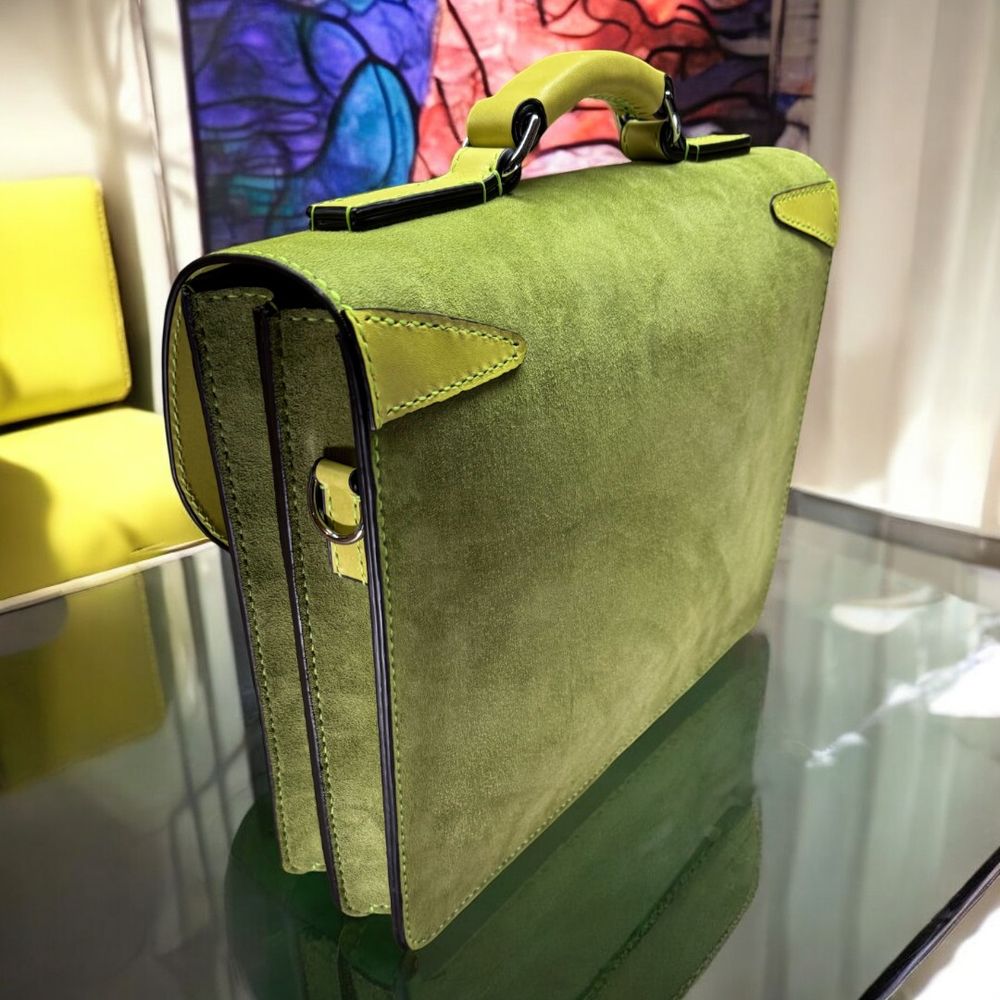 - This briefcase is made from Italian calf skin suede leather outer with a vegetable tanned leather structure and lining.