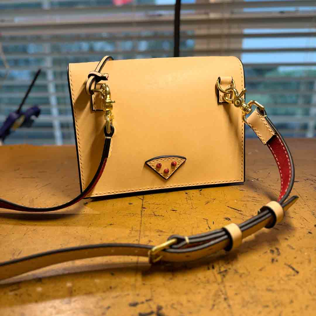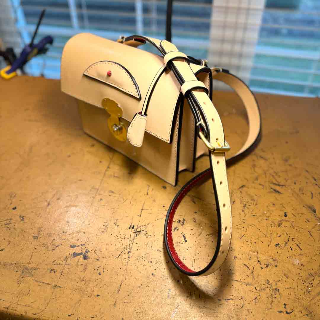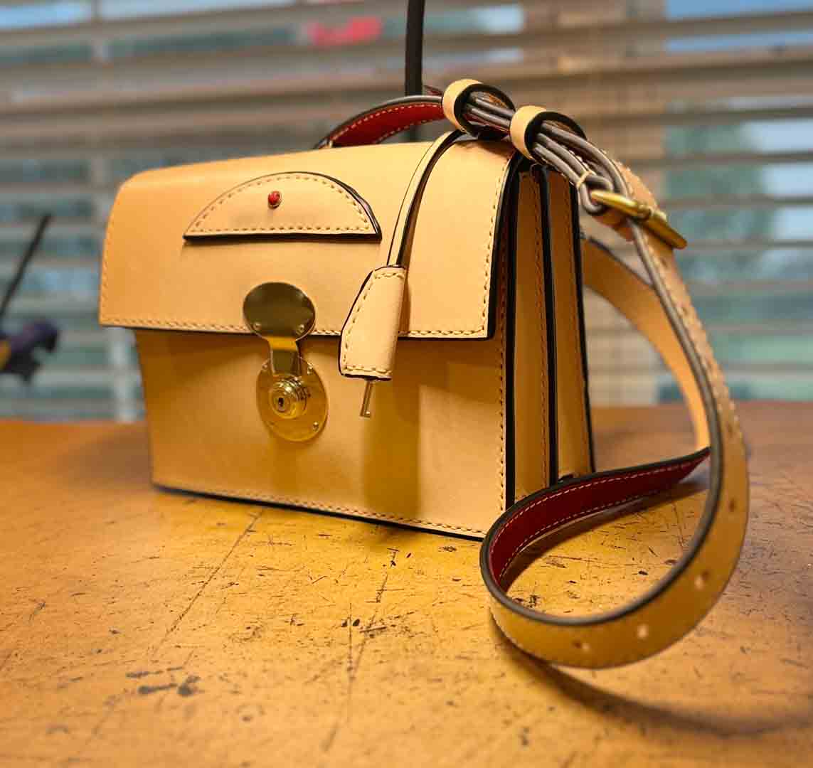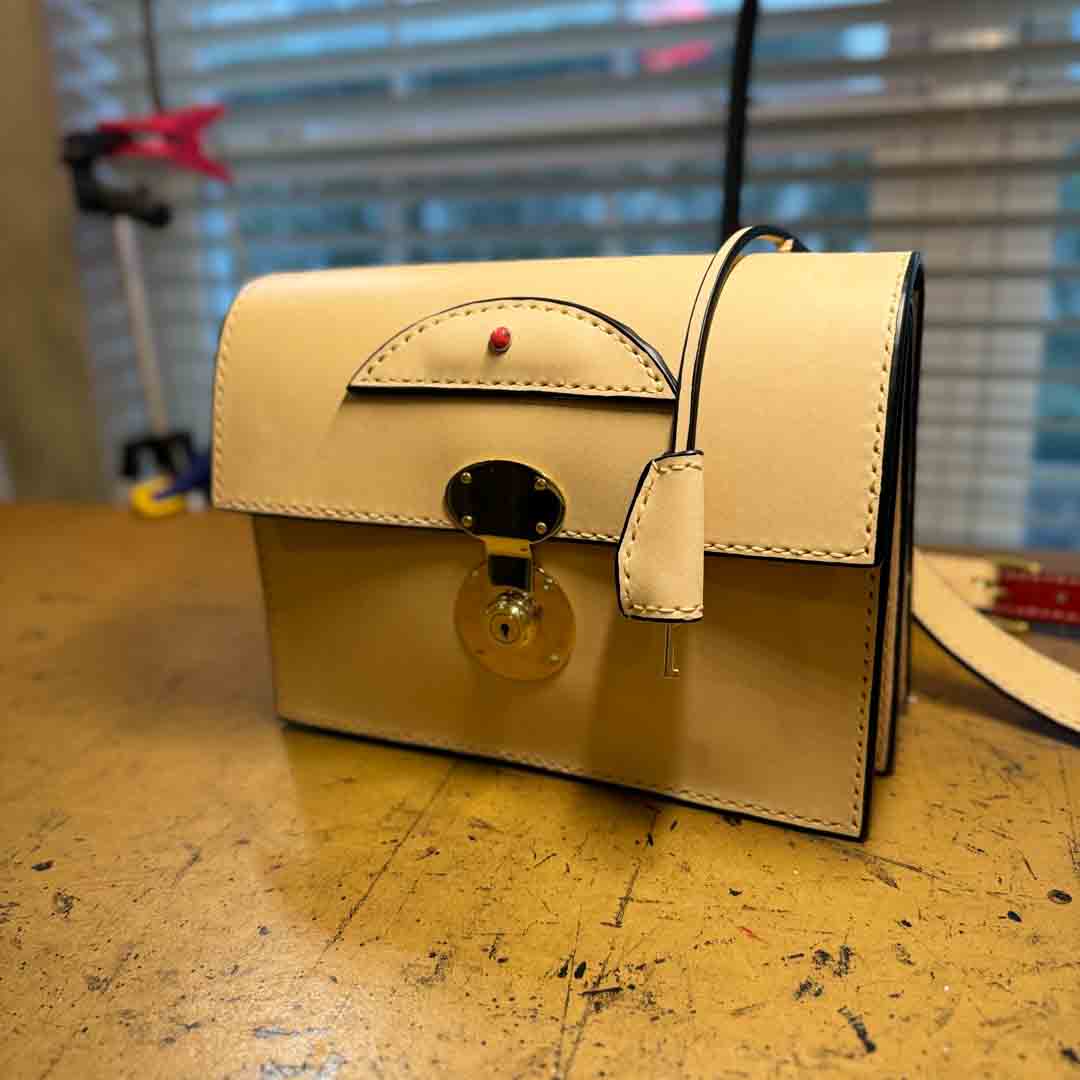 NOTE: The leather design above the lock you see in the sample photos will NOT be made with new custom orders of this bag.