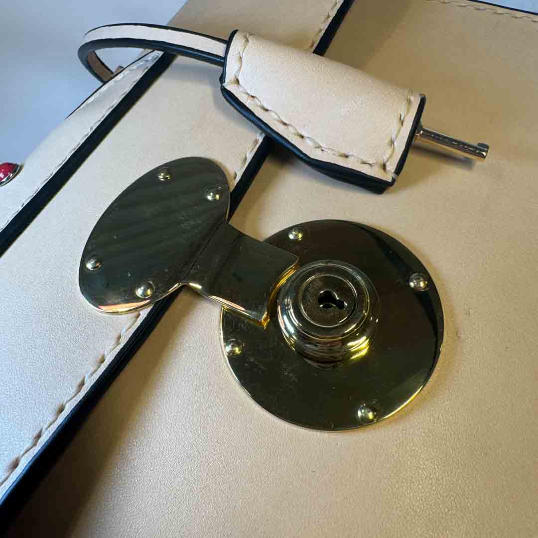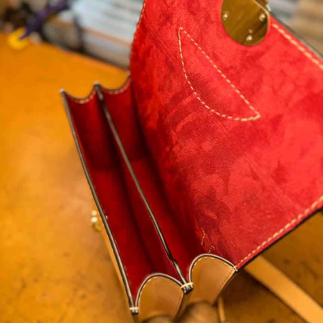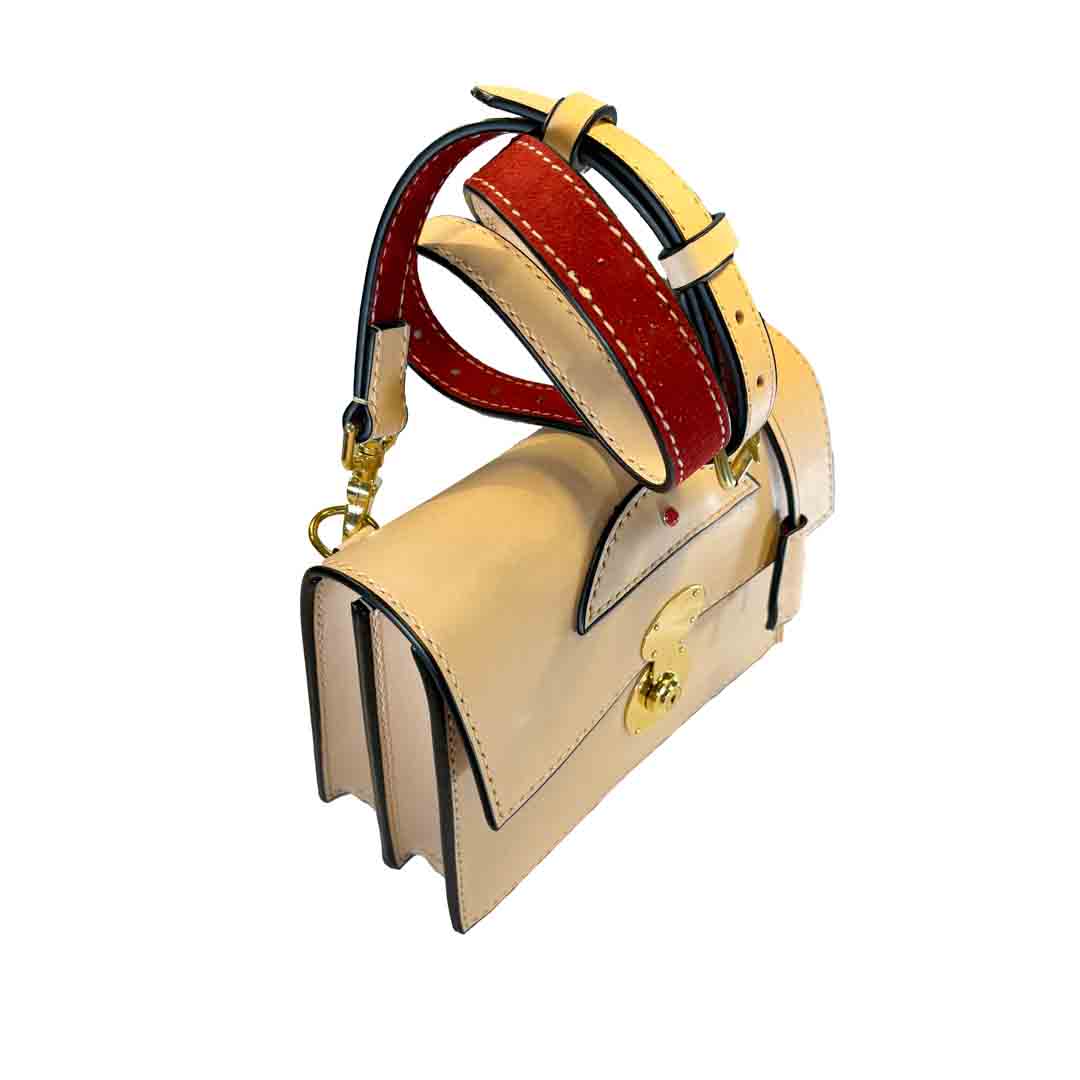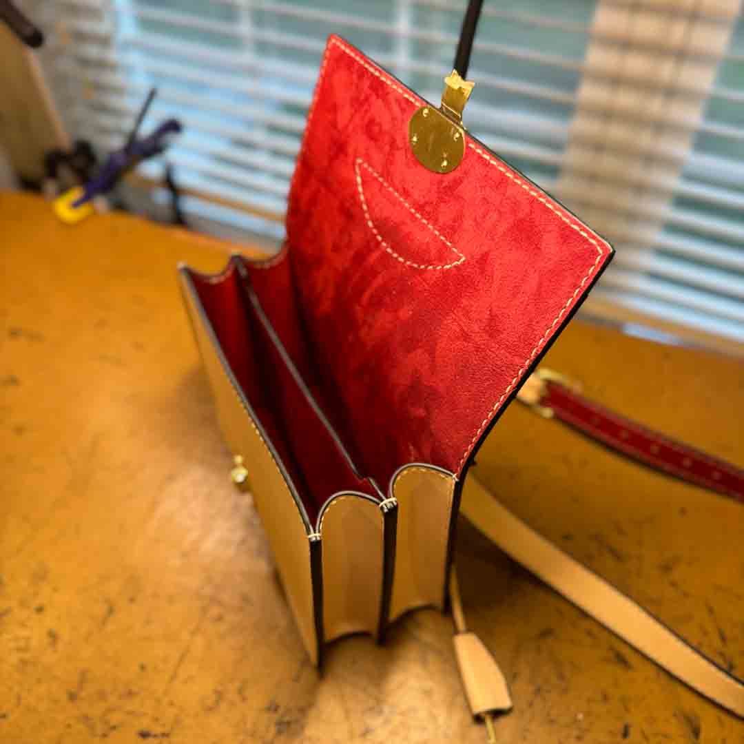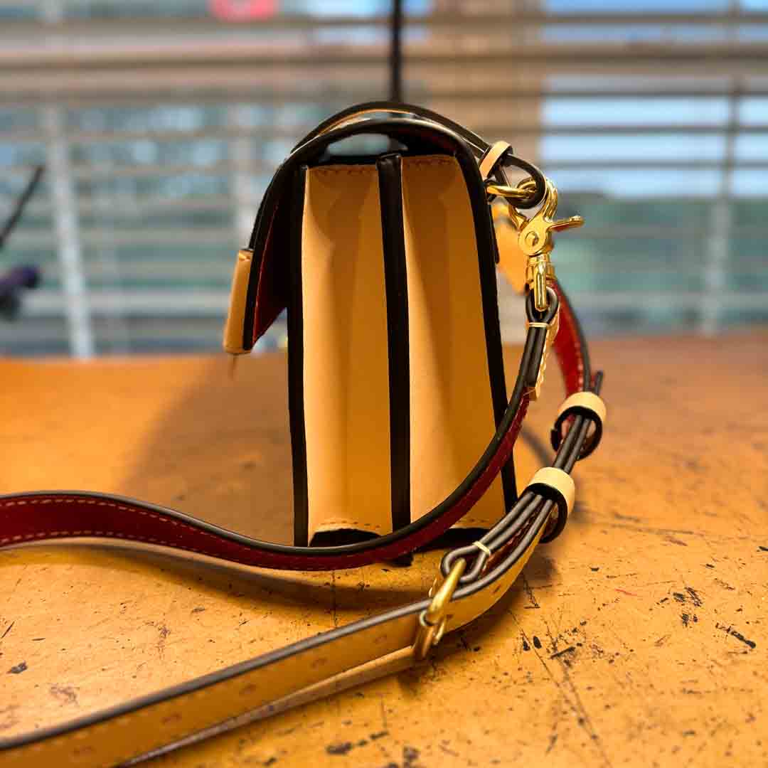NOTE: The leather design above the lock you see in the sample photos will NOT be made with new custom orders of this bag.