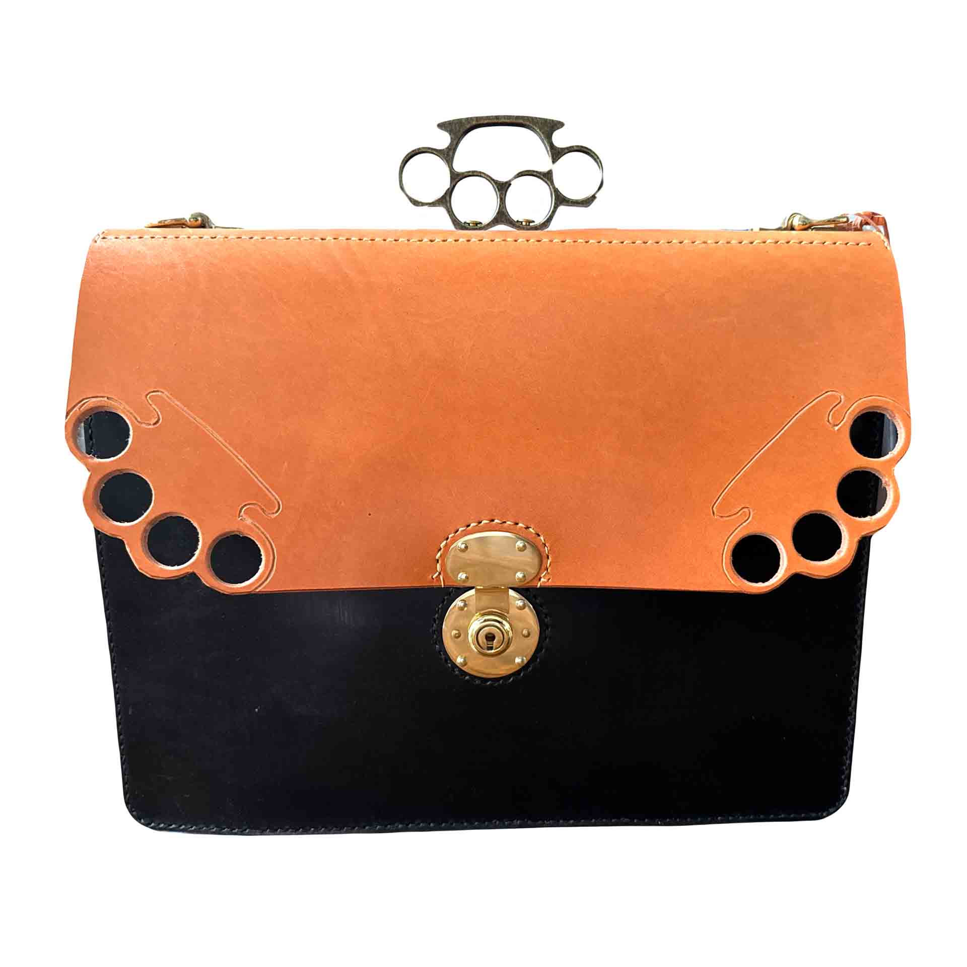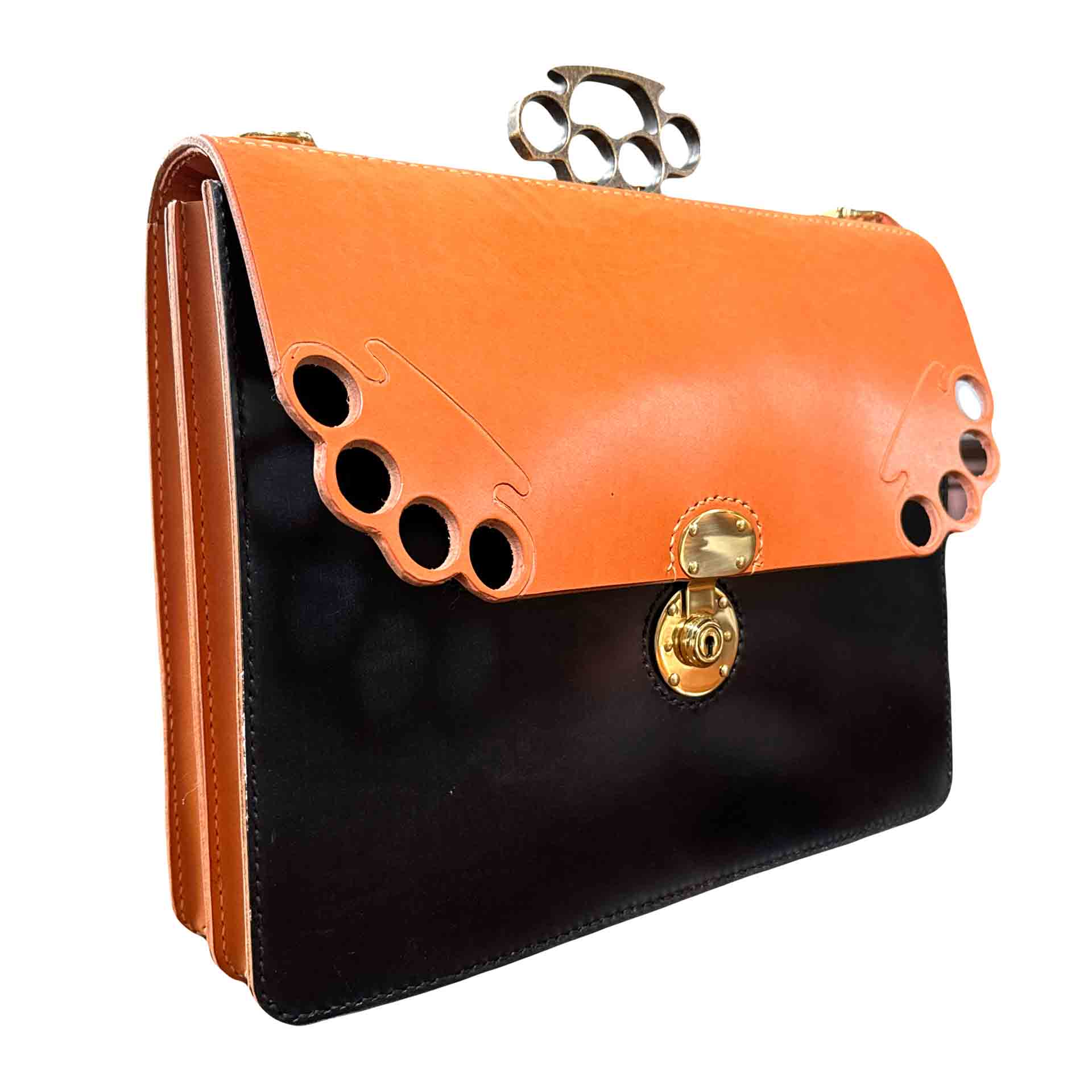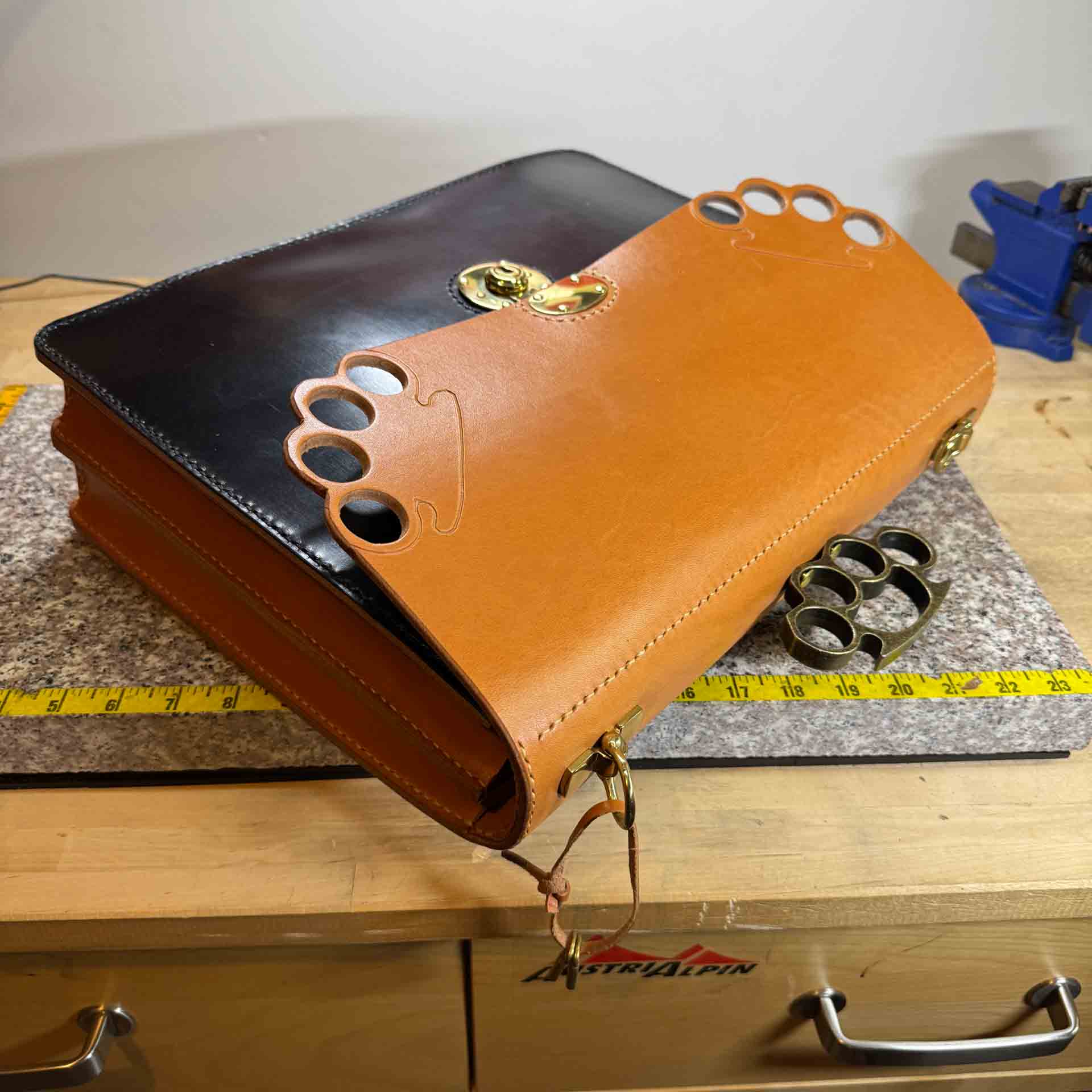 Permanently affixed to an aluminum bar, the brass knuckles are an integral part of the briefcase and cannot be detached. I have also provided video demonstrations showcasing the creation process of this briefcase with the integrated knuckles.