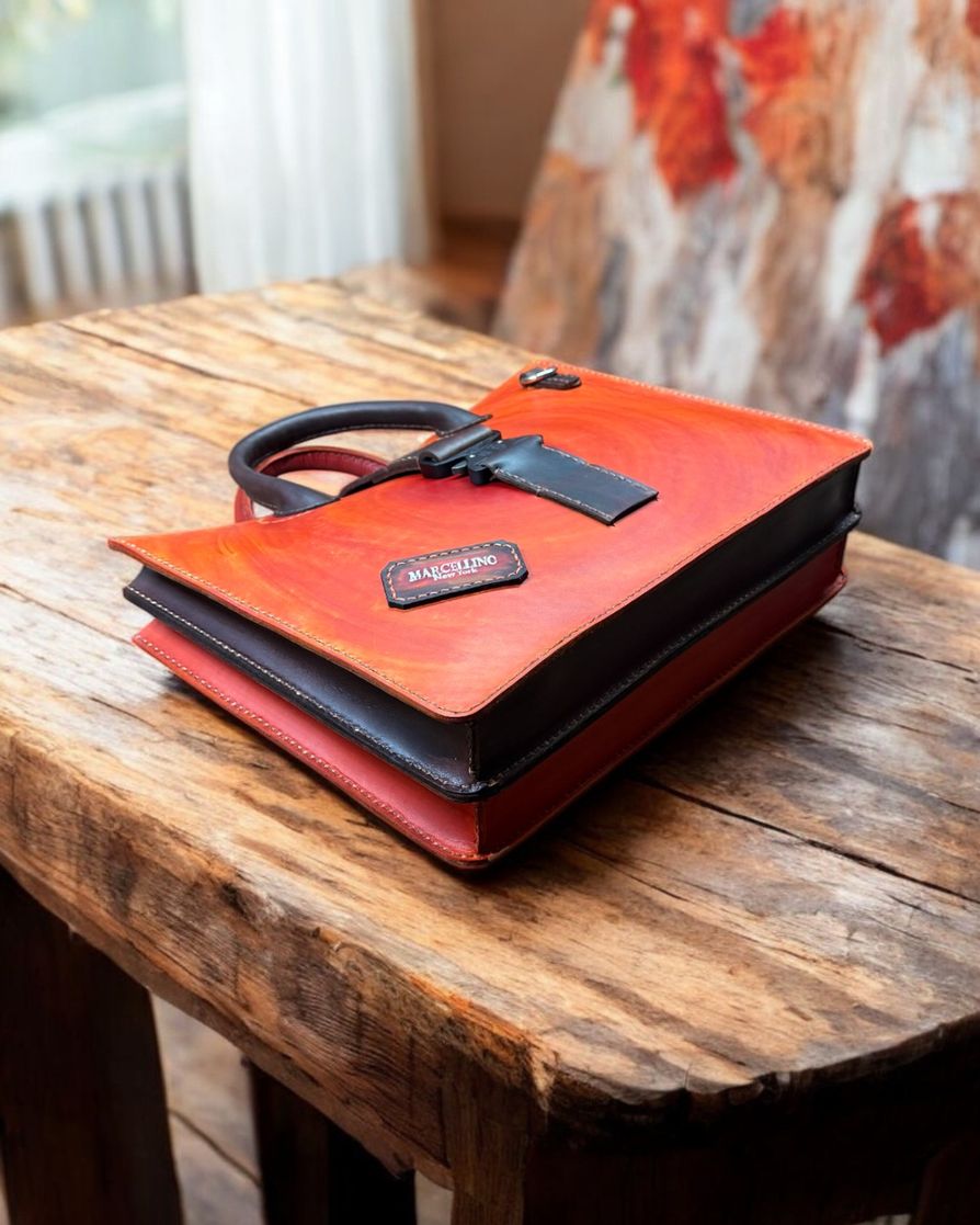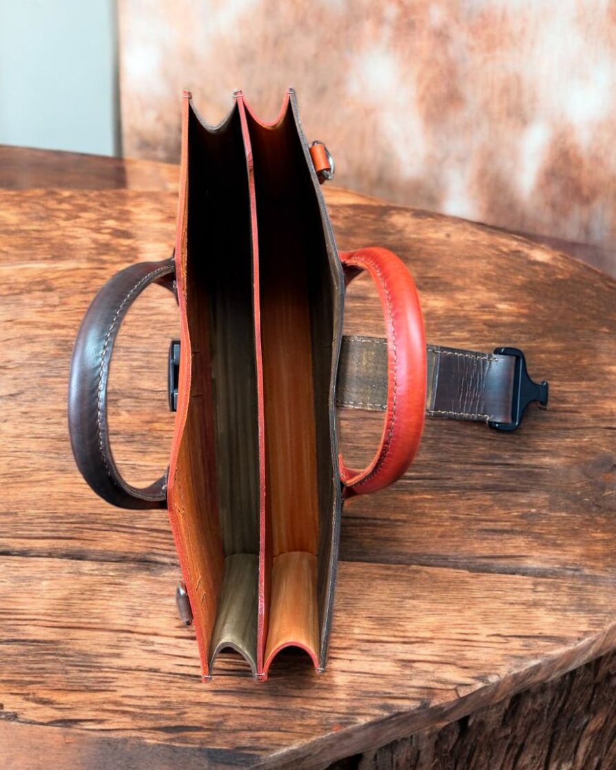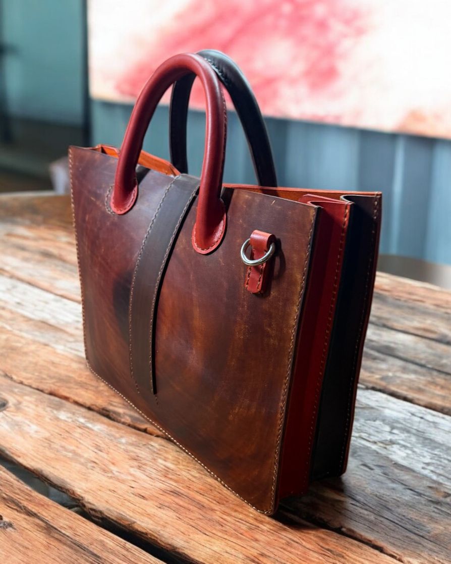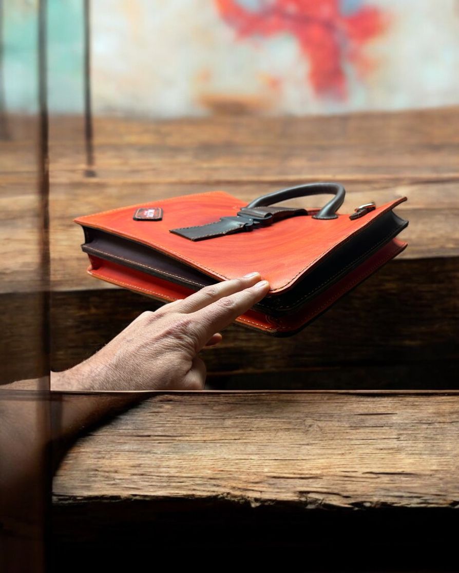 This briefcase was made in summer of 2024. This is hand dyed fine thick vegetable tanned leather.