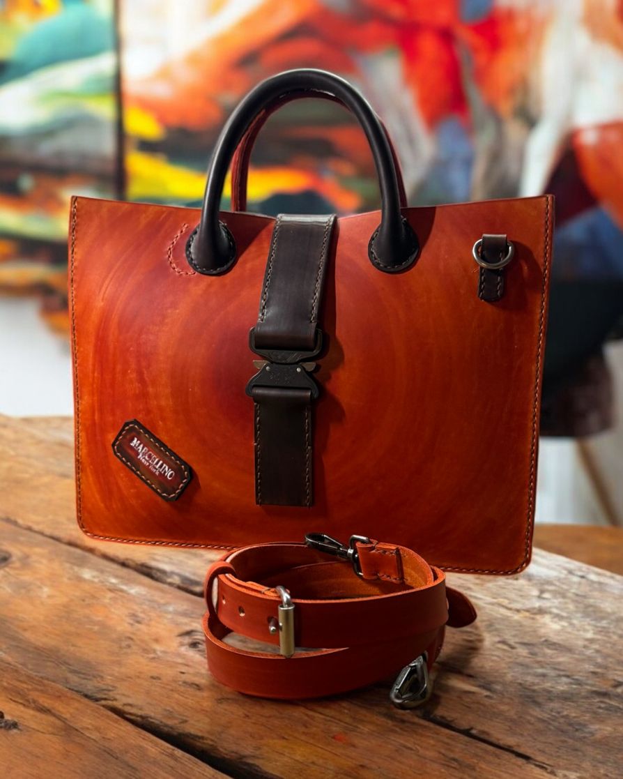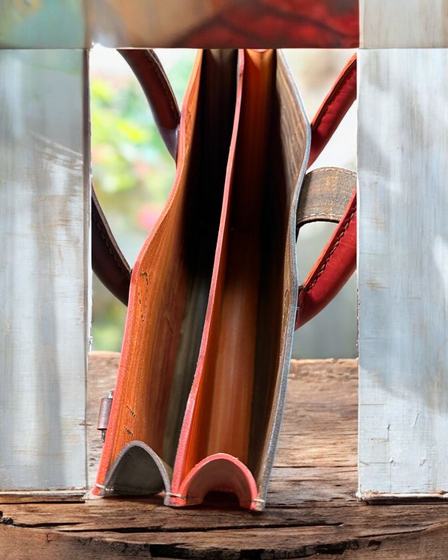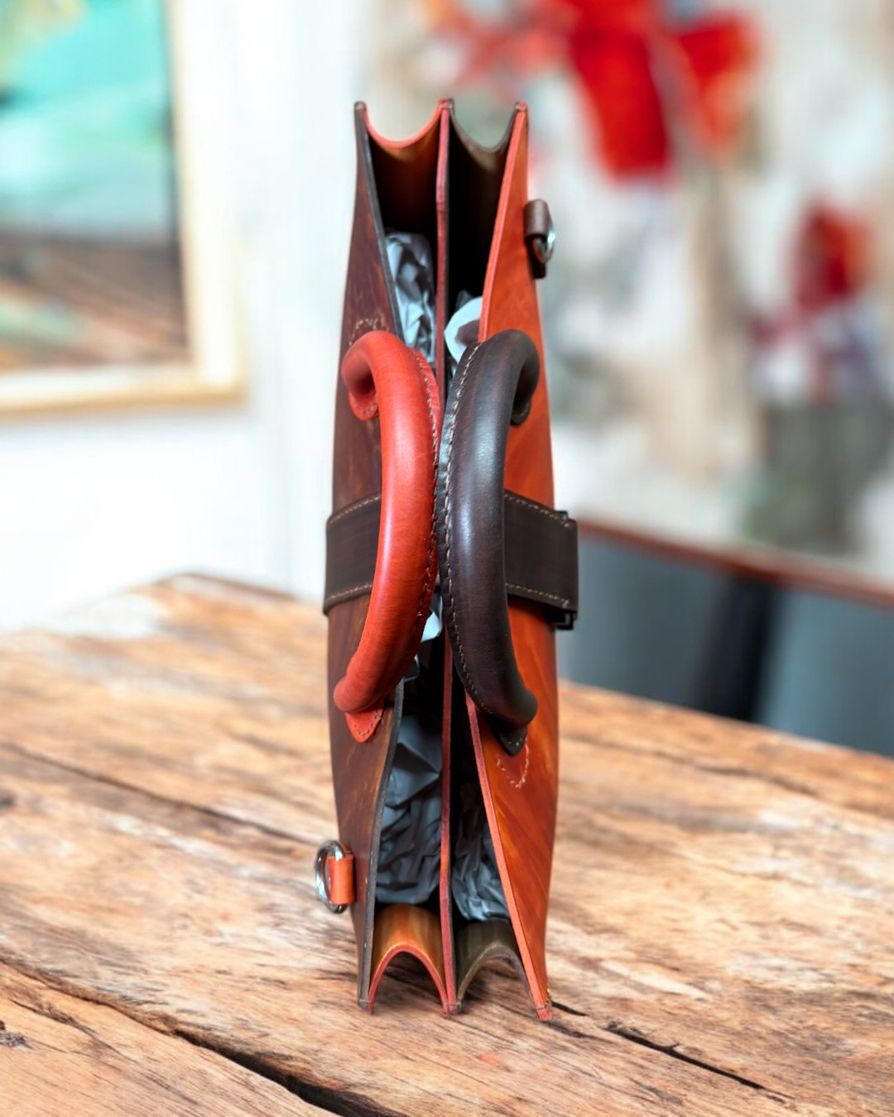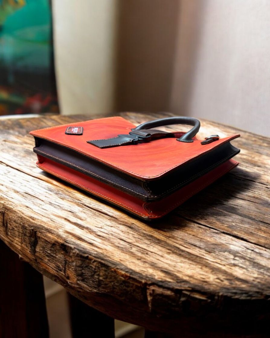 This briefcase was made in summer of 2024. This is hand dyed fine thick vegetable tanned leather.