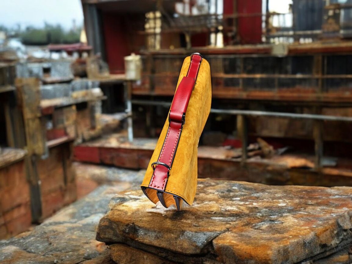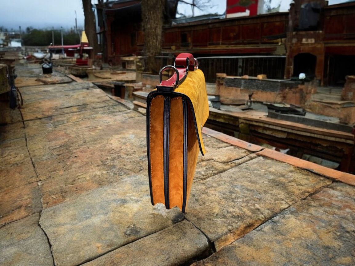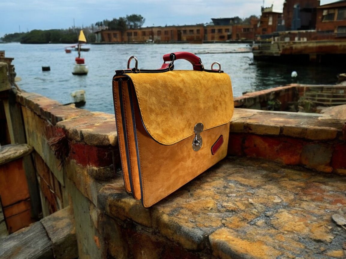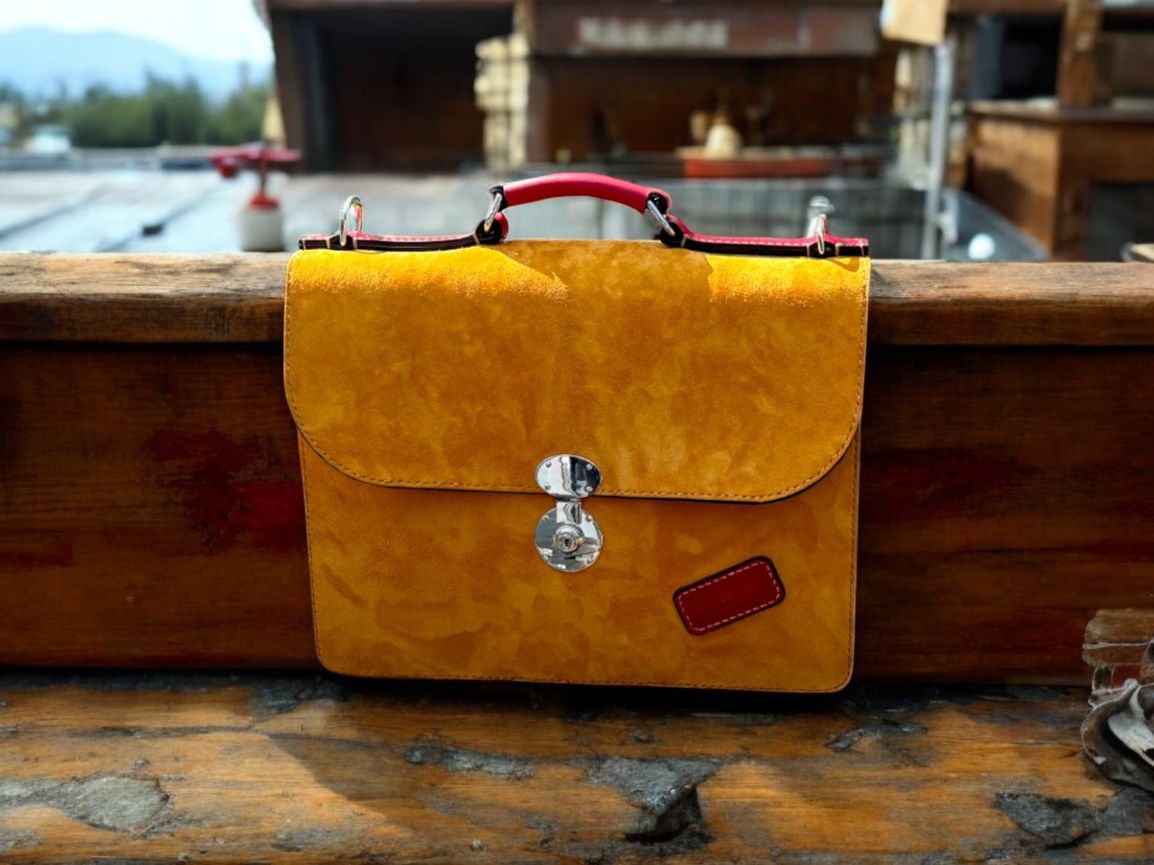 • This briefcase is made from Sheep skin suede leather outer with a thick stiff bridle leather structure and lining.