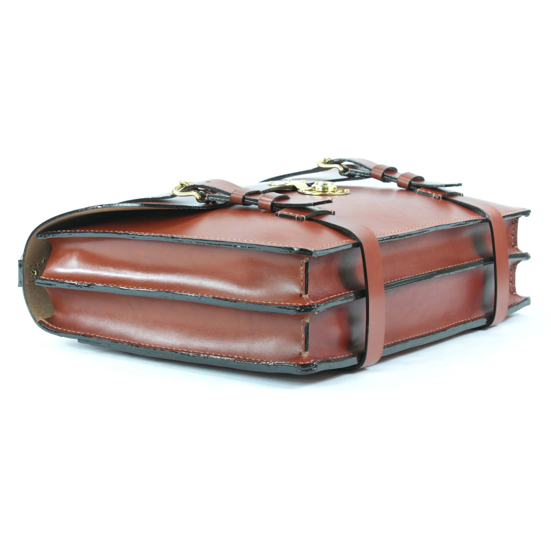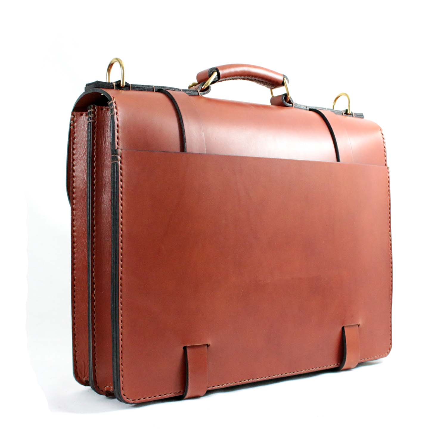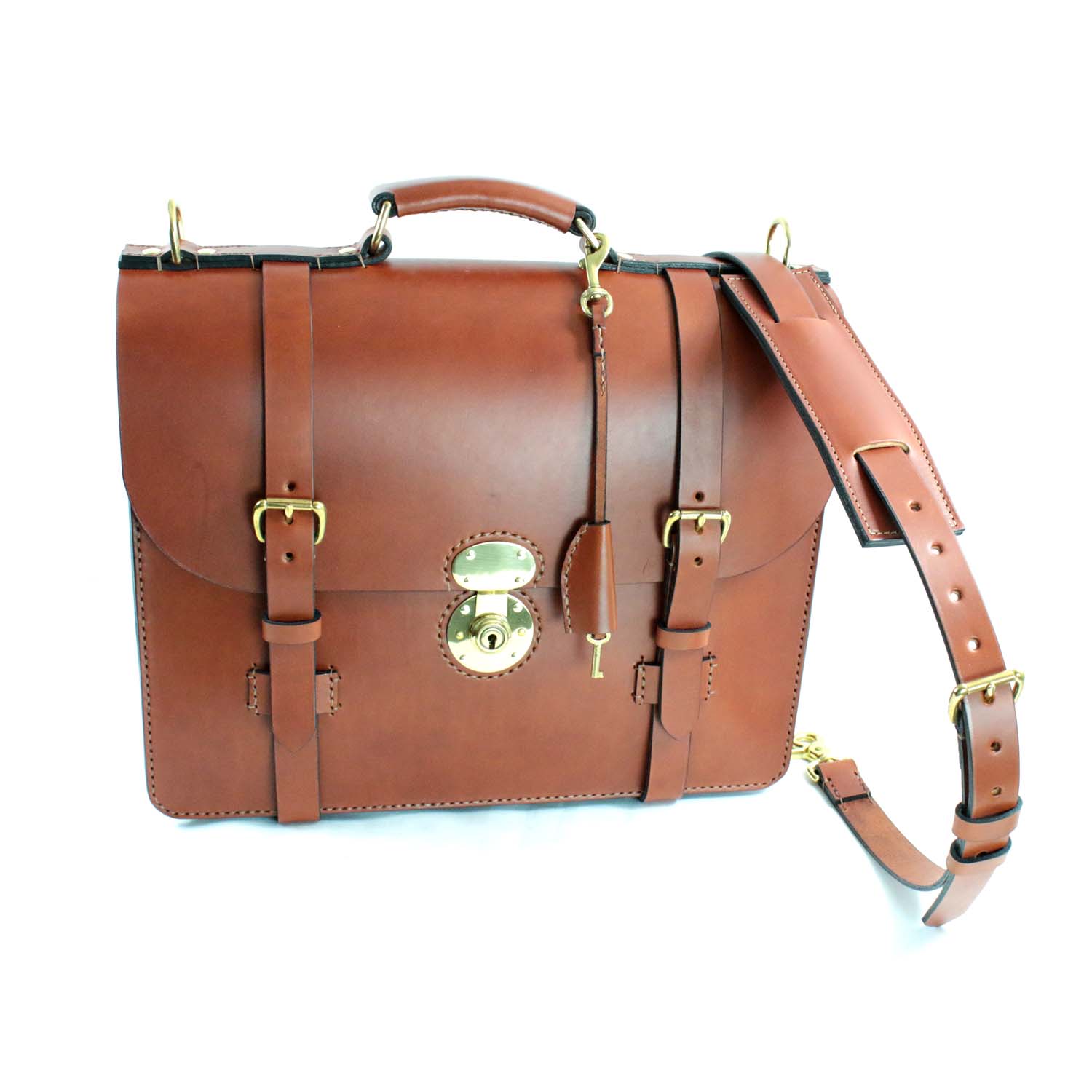 The Alfred Wallace is a classic English briefcase style, made in the same way these cases were built over 100 years ago.  All hand saddle stitched using authentic Wicket and Craig USA bridle leather, removable shoulder straps and a high-end brass lock that I install with strong real rivets.  The lock just gives it the authenticity of a classic English style. Comes with custom inside pockets, an outside pocket and either a natural lining or a full Italian calf suede lining.