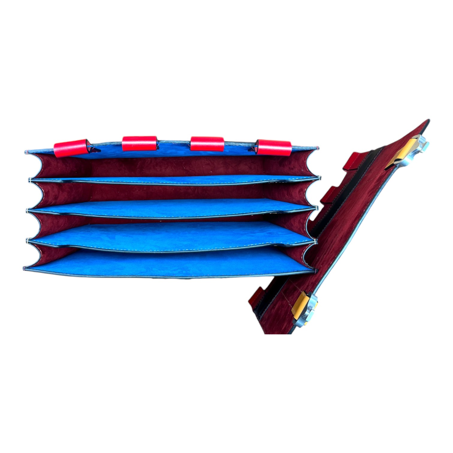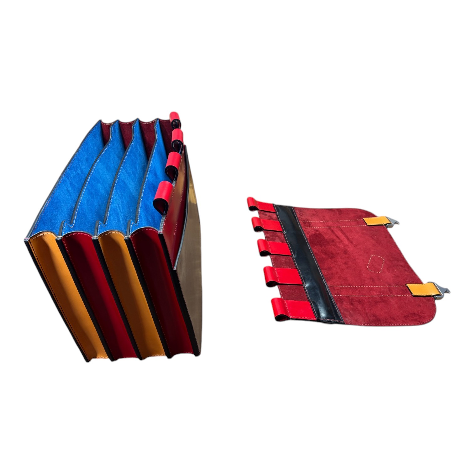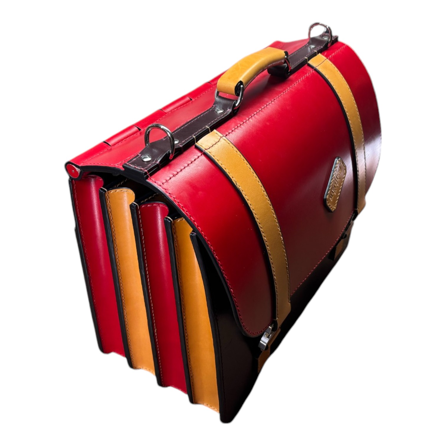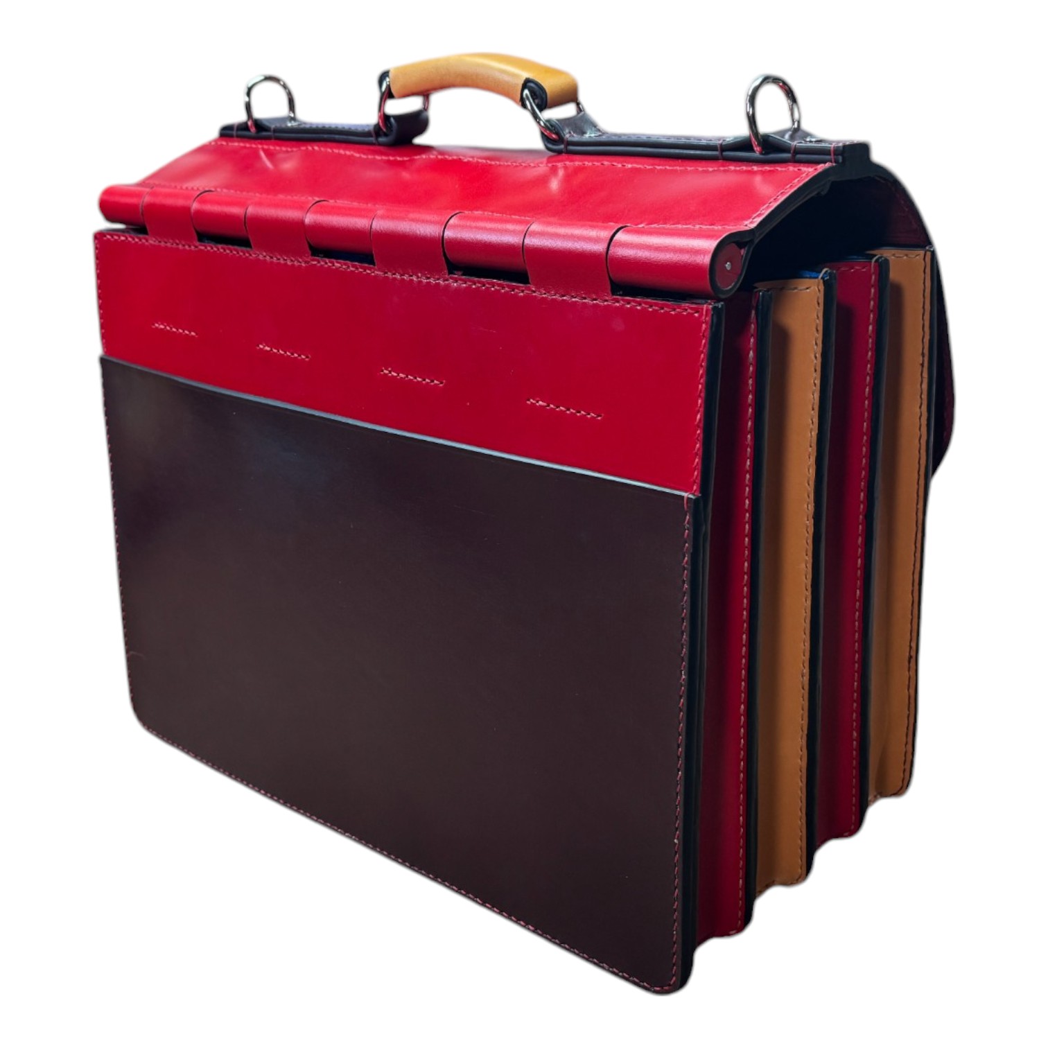 The briefcase in the images is made with Authentic UK English bridle leather in Burgundy, Red, and London Tan with a calf suede and sheepskin lining. As long as I can still source all the same colors, I can make this as you see it or with different colors or a single solid color. This can also be made unlined for a lower price. Reach out to discuss jp@marcellinony.com